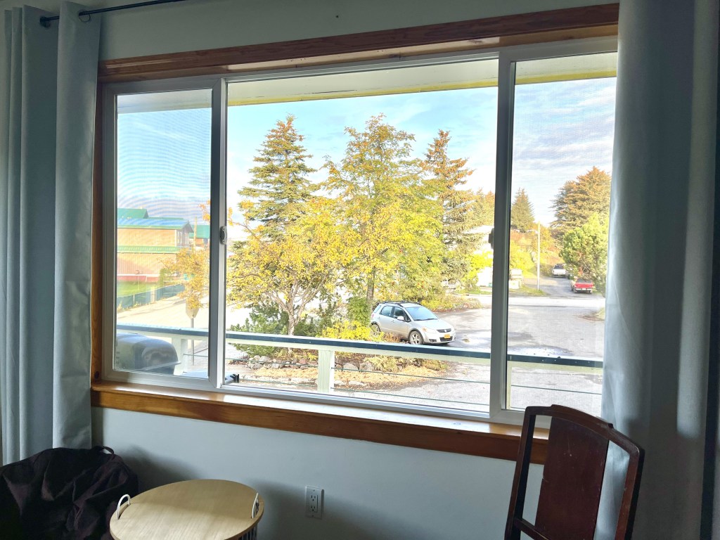 With large picture windows in the living room facing North and West, and a small upstairs deck, you will be able to enjoy the activity on Main Street.