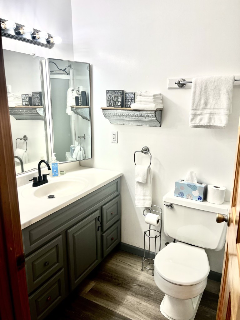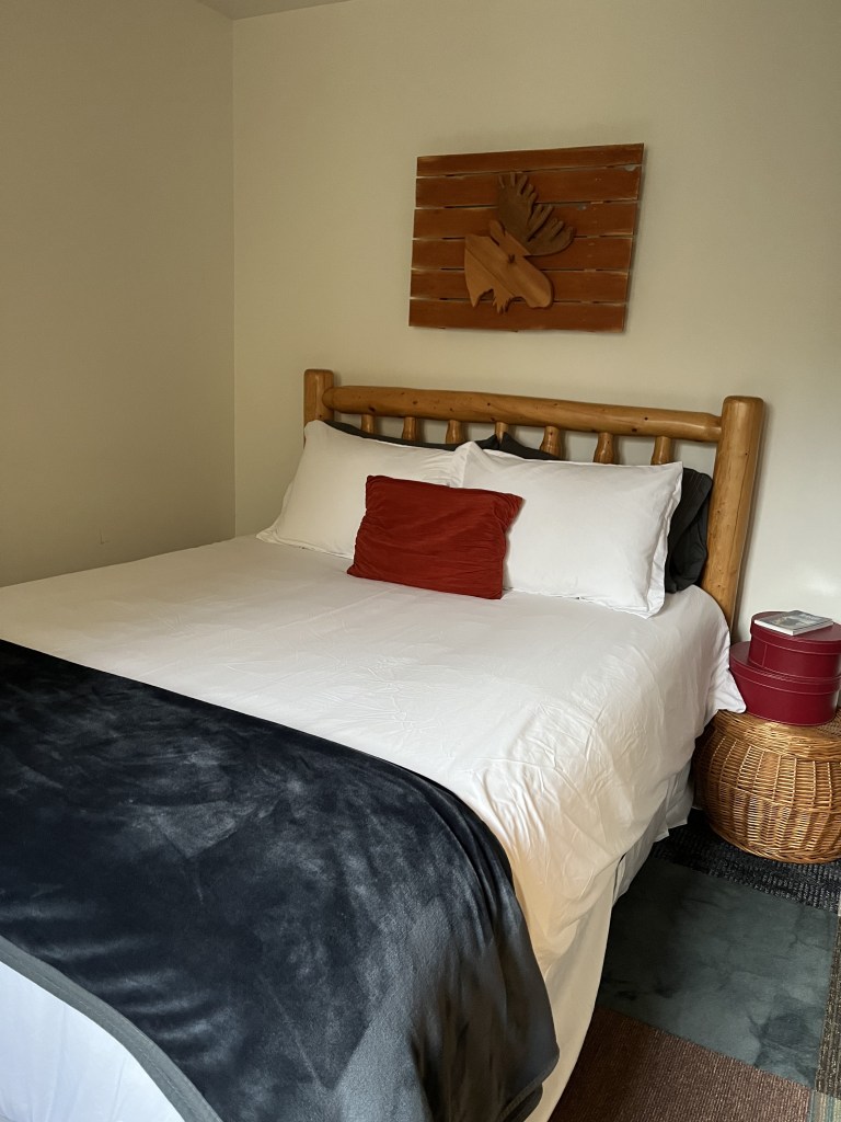HBL Upstairs is a (3) bedroom (2) full bathroom unit that comfortably sleeps (7). Each bedroom has their own queen bed, closet, and black out curtains. The master bedroom has an ensuite full bathroom, as well as an electric fireplace. There is also a queen futon in the living room.
